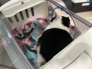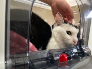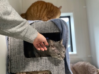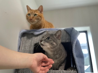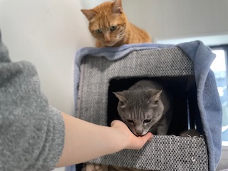 ネコのむぎちゃんです。一緒にお見送りをして、