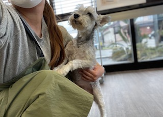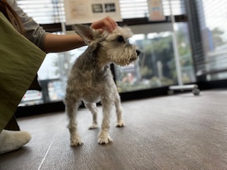 スタッフに撫でられ、満足そうなアラレちゃん🥺