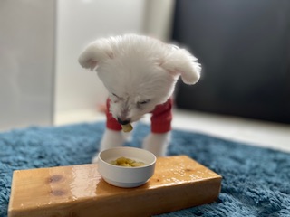 蓮ちゃんにおやつをあげると羨ましそうにみている