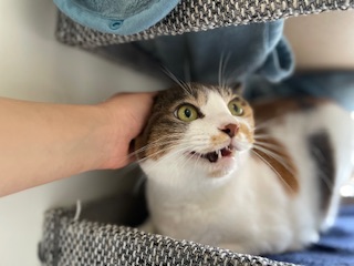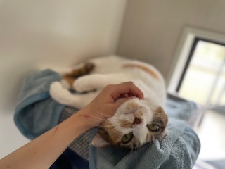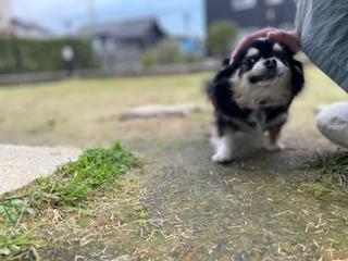 おーちゃんも少しビクビクしながら顔を撫でさせて