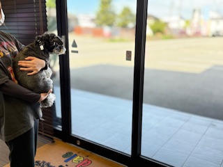 ぷぷちゃんを抱っこしながら一緒にお見送り♪