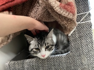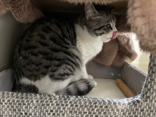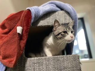 夕方は少し慣れてきたのか、キャットタワーから顔を出してくれました🥺👏
