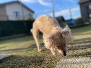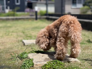 石の上にちょこんとと乗ってクンクン匂い嗅ぎ中〜