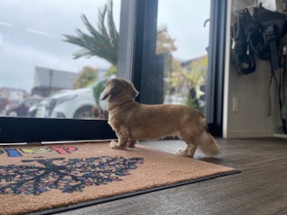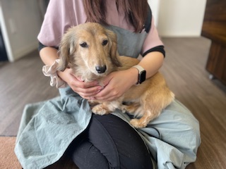 続いては、お泊まり中のミニチュアダックスフンドの