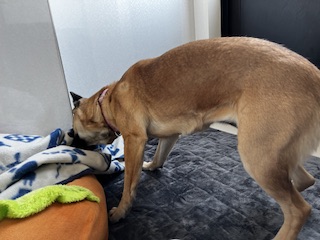 おやつを一つもらった後は一生懸命クンクンタイム⏲️