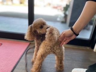 トリミングが終わったからお迎えを待っているのかな?