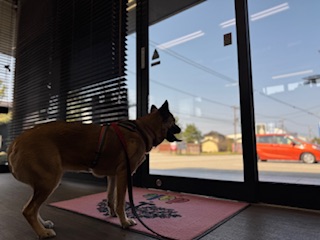 少しお外でお散歩しましたが扉の前でお座りをするアムちゃん😆