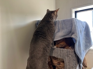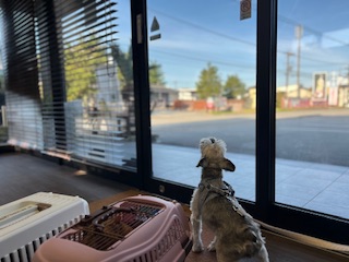 お部屋に帰りたい様で、扉の前に座っています。😅