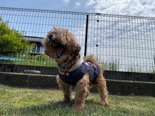 朝はのんびりお散歩を楽しむモカちゃん😊
