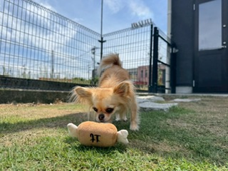 お泊まり中のワンちゃんは朝、昼、夕、夜、深夜と5回以上ドッグランで遊びます。