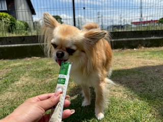 お外でチュール貰いましたが数口だけ食べ残りは、お部屋で食べました!