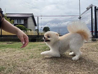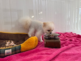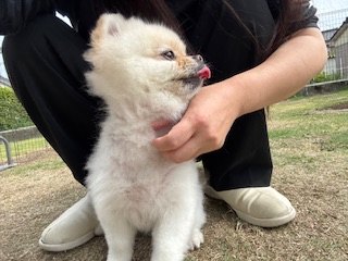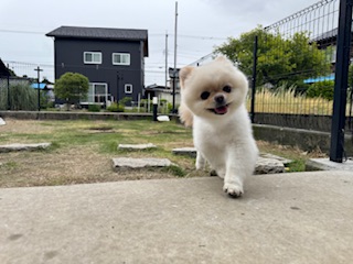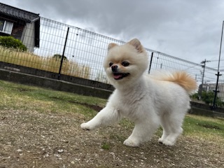 お泊まり中のポメラニアンのユズちゃんU・x・U
