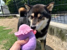 おもちゃでお誘いしてみましたが、クンクンしただけでした!