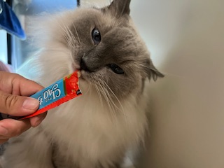 お部屋に戻ってチュールを貰いました。