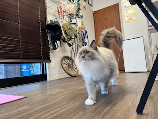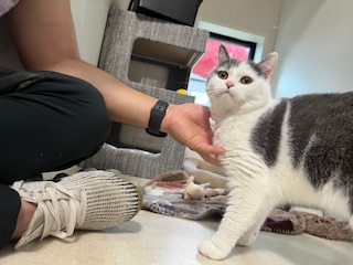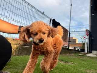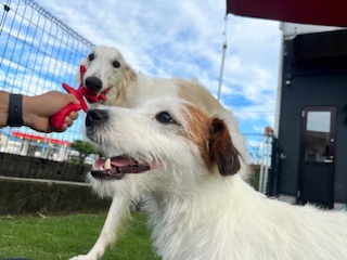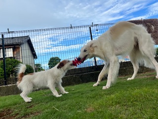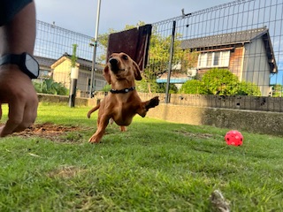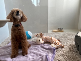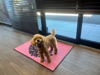 スタッフが近づくとマッシュちゃんが遊ぼう!と