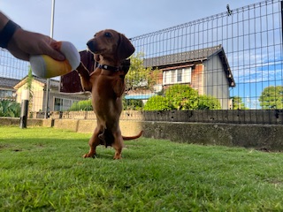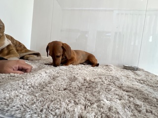 続いてはお泊り中のダックスフンドのもつにちゃん!