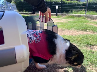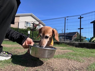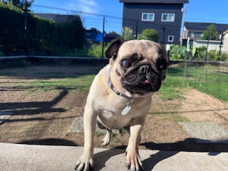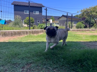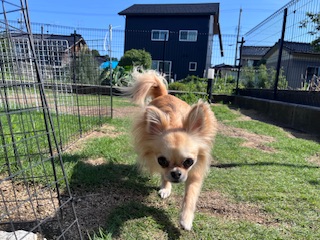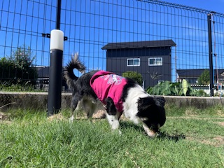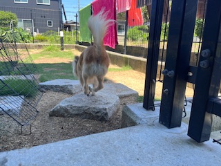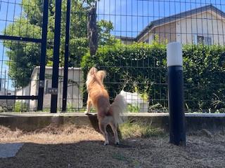 ※暑さに弱い犬種ですので、お外に出る時間を調節して出ています。