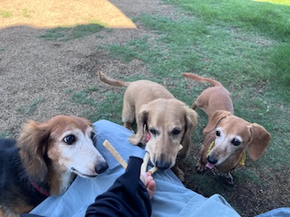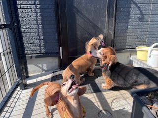 続いては、お泊まり中のミニチュアダックスフンドの親方ちゃん・ビチちゃん・ぷりんちゃんfamilyです!