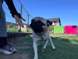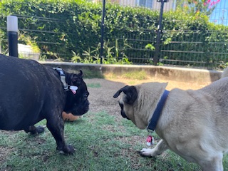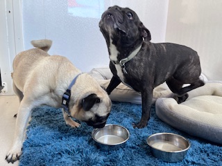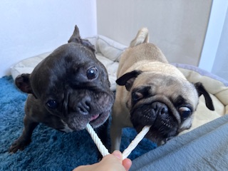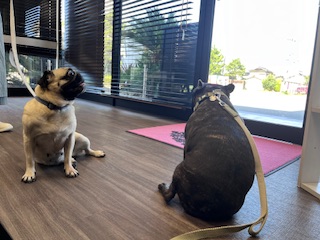 本日AM8時20分からお泊まりご利用頂いておりますパグのブリちゃん・フレンチブルドッグのデイジーちゃんfamilyです!