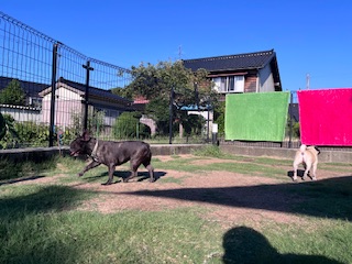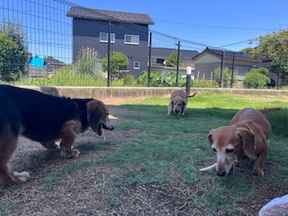 お泊まり中のワンちゃんは朝、昼、夕、夜、深夜と5回以上ドッグランで遊びます。