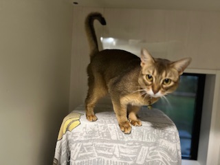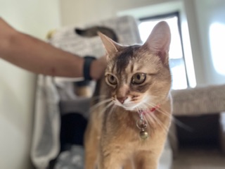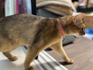 電話が鳴って驚いて、お部屋に戻ってしまいました。