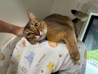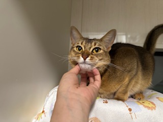 スタッフに顎の下をなでなでしてもらってる最中に遊ばれてるスイちゃん😂ぷにっとなってるお顔可愛いです😆