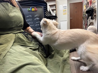 スタッフに少し近づくもすぐ違うところに行ってしまいます😅